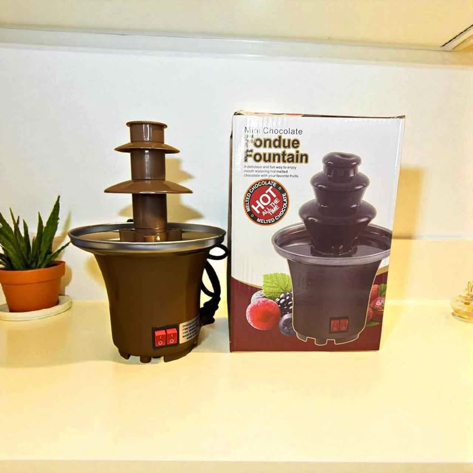 Disfruta momentos especiales con esta mini fuente de chocolate de 3 niveles, ideal para cubrir frutas, fresas, bombones y más 🍓🍌🍡