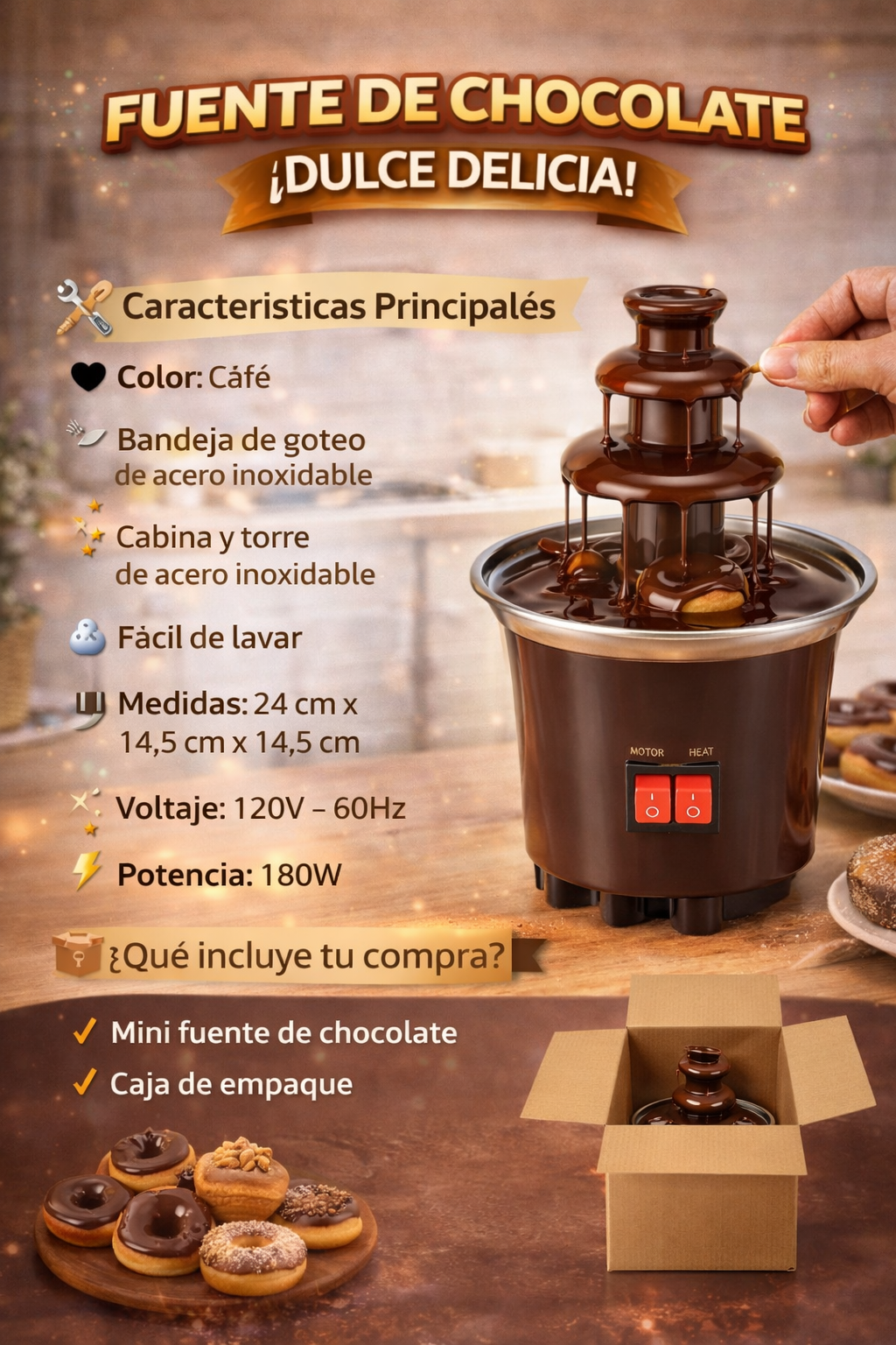 ⚠️ Esta fuente solo se puede utilizar con chocolate tipo fondue para un flujo correcto y perfecto
