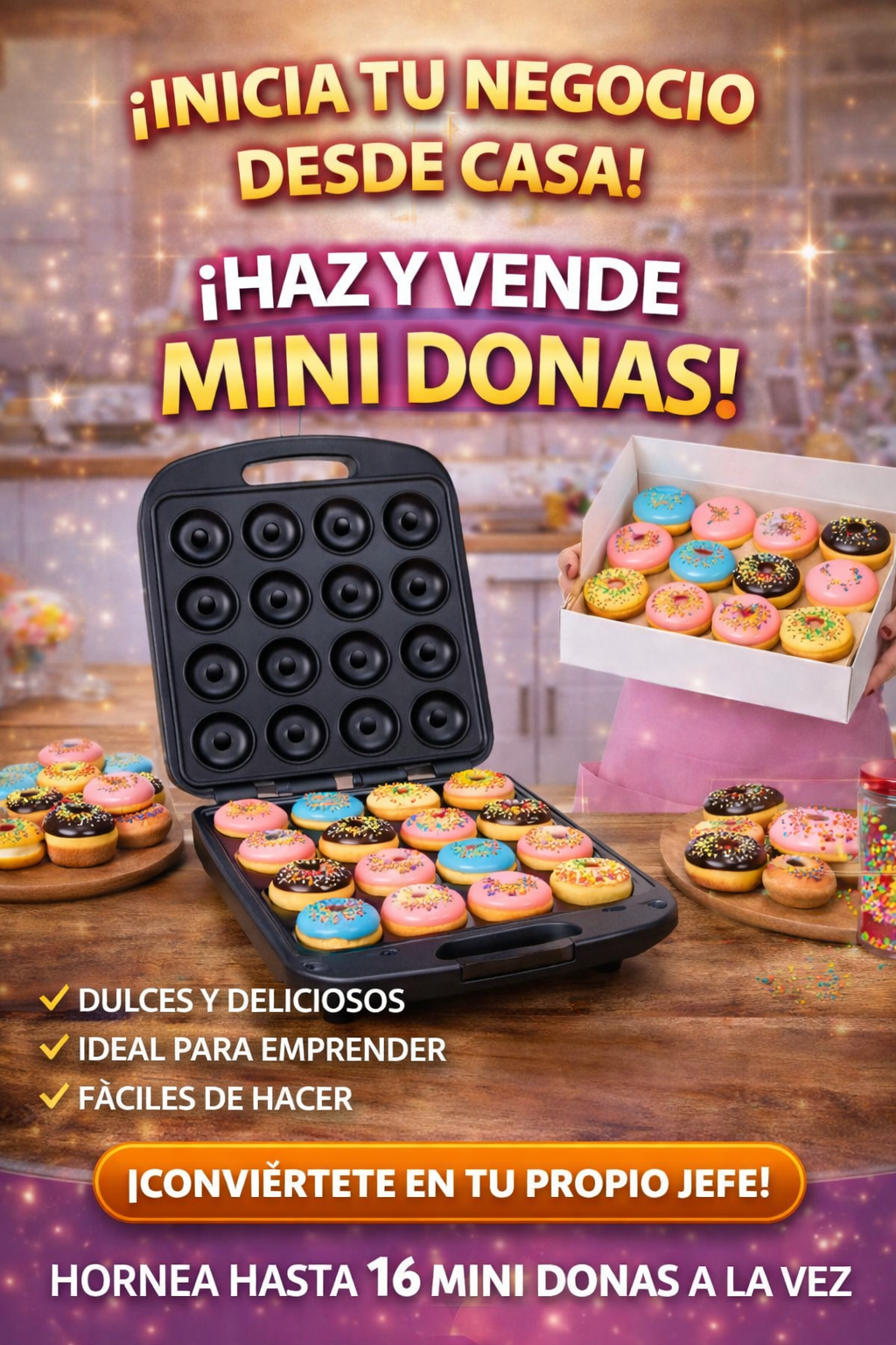 ¿Te imaginas producir 16 mini donas en pocos minutos y empezar a vender desde casa? 😍